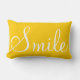 Hier is een glimlach voor je. Onze "Smile" gele en witte decoratieve kussen