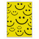 Illustration graphique simple d'un joli visage souriant répété contre un arrière - plan jaune vif. Image disponible sur divers cadeaux et produits.