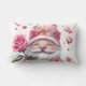 A cheerful gnome dressed in pink with a flower-adorned hat, holding a rose, surrounded by floating hearts, evoking boorth and love.