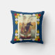 Een kussen met een van oudsher geschilderde narrowbootwedstrijkscène, met herfstgekleurde bladeren op de achtergrond en kale bomen. De narrowboot draait rond op het kanaal, een manoeuvre genaamd wikkeling. Het schilderen heeft een hoekgrens van traditionele kanale rozen van een originele foto.