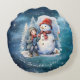 Sneeuwman en jongen met sjaals Sterrennacht Monogr Rond Kussen
