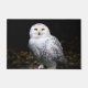 Dierlijke foto van majestueuze sneeuwowl die op een tak staat.