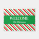 Doormat in strepen met diagonaal snoep, van snoeprietrood en groen, met gepersonaliseerde tekst