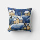 Pillow featuring a painting of a cool snow covered winter landscape with cute cats. A beautiful whimsical pillow for a cozy winter.