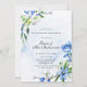 Het ontwerp is voorzien van een gekleurd opschrift met een bloemelement in tinten blauw en wit over bladeren van bladeren van bladeren van de bladeren van de bladeren, een tak van de sneeuwval en een scilla op een lichtblauwe achtergrond van de waterverf. Geweldig voor je trouwfeesten!