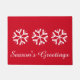 Welkom deurmat in het rood afgebeeld met een schattige kerstsneeuwvlokken print. Pas dit object aan of koop het object zoals het is.
