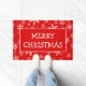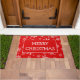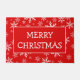 Deze deurmat is voorzien van een aanpasbare begroeting en leest momenteel "Vrolijk kerstfeest" met een witte getrimde rode rechthoek op een rode achtergrond bedekt met verschillende maten sneeuwvlokken. Verander de begroeting eenvoudig in "Season's Greetings" of een andere soortgelijke maat die direct op de productpagina staat!