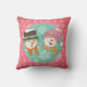 Snowmen Roze en Blauwe vakantiekussens, zo en kleurrijk, hebben een witte sneeuwvlokken op een roze achtergrond met een aqua blauwe cirkel met witte stippen en elke kant heeft een glimlachend sneeuwpaar met een pet, sjaal, wortelneus en sneeuwvlokken!