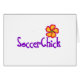 La conception mignonne pour faire le monde vous connaître sont un poussin du football ! Comporte le texte pourpre SoccerChick avec une fleur - grande pour votre footballeur préféré !