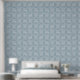 A serene, hand-drawn rococo pattern featuring carousel horses and florals in soft blue and white. The intricate plaster texture and symmetrical layout create an elegant, vintage-inspired look with a timeless storybook feel.