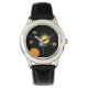 Dit horloge geeft de illusie dat je diep in de ruimte glijdt met de lichtaarde en de zon in je kijkrichting. Deze planeten zijn originele tekeningen door Mozartini en zijn ook beschikbaar als muur, vloer, en vensterwijzerplaten zodat kunt u uw eigen dramatische planetaire regelingen maken.