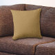 Beide zijden van deze kussen hebben een stevig gouden kleur, een faux denim patroon.
