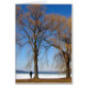 Un chiffre solitaire contemple le lac congelé Cayuga les saules d'or dans Ithaca, N.Y. se tiennent contre un ciel bleu pur.