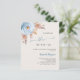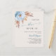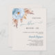 Voor een boho stijl vrijgezellenfeest. Een beige achtergrond. Versierd met een stoffig blauw roos, pampasgras. Personaliseer en voeg een naam en partijgegevens toe. Tekst: Iets blauw voor ik het doe. 1 vel = 1 bruids douche uitnodiging bedrukt rand tot rand.