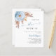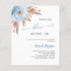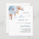 Voor een boho stijl vrijgezellenfeest. Witte achtergrond. Versierd met een stoffig blauw roos, pampasgras. Personaliseer en voeg een naam en partijgegevens toe. Tekst: Iets blauw voor ik het doe. 1 vel = 1 bruids douche uitnodiging bedrukt rand tot rand.