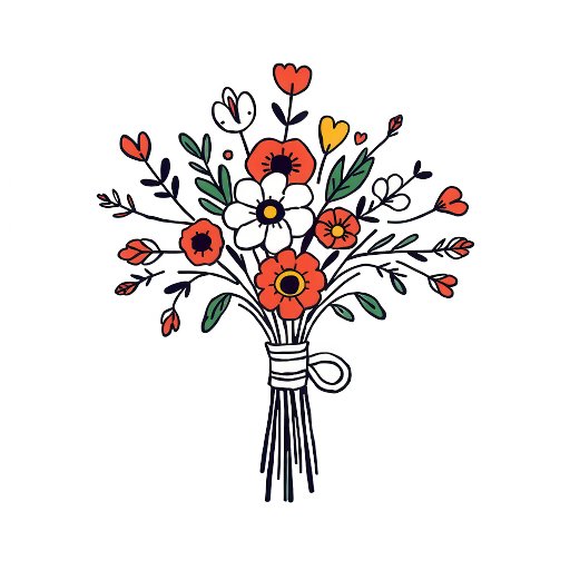This wedding sign features a minimalist, modern design with a centered bouquet illustration of red poppies, white daisies, and green foliage, creating an elegant and inviting focal point. The color palette includes vibrant reds, crisp whites, and lush greens, complemented by clean lines and flat colors for a contemporary feel. The typography combines bold serif fonts for the names with simple sans-serif fonts for additional details, ensuring readability and sophistication. Perfect for adding a touch of warmth and style to any wedding celebration, this sign is customizable to suit your special day.