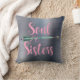 Soul Sisters Pillow Brushed zilveren achtergrond met Soul Sisters in roze, geaccentueerd met boho geïnspireerde aqua pijl. Citaat uit de Life Boutique.