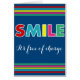 Sourire coloré, il est gratuit design texte avec décoration rayée sur arrière - plan bleu