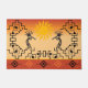 Zuidwestelijke Kokopelli Deurmat of keukentapijt. Levendige kleurencombinatie die u de achtergrondkleuren kunt aanpassen aan uw decor. Kokopelli Indiaanse culturen zeggen dat KoKo in zaden, lente en vruchtbaarheid werd geprezen. Heerlijk afbeelding in de schaduw van levendige gele, en kokopelli silhouetten. Toegeschreven aan oude buitenaardse wezens of stammenkunst en geïnspireerd door grot- en rotstekeningen. Pas uw Zuidwestelijke Stijl Native Amerikaanse deur mat tapijt kleuren en stijlen. Geweldig cadeau idee.
