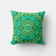 Het ontwerp van de textiel uit Zuid-West / Aztec heeft een inspirerend textielontwerp en werpt een kussen in een zonnewijzerplaat / mandala - licht kalkgroen en smaragdgroen, voorzien van turquoise / pauock