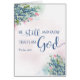 Carte de voeux avec le verset de la Bible du verset d'écritures familier du Psaume 46:10, "Soyez toujours et sachez que je suis Dieu" dans un style moderne et typographique entouré de jolies fleurs d'aquarelle et de feuilles. Conçu par Simply Scripture; artwork from Design Cuts.