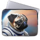 Digitaal schilderij van een schattige, eenzame pug in ruimtesuiker. sciencefictionkunst.