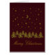 Personaliseer, Golden sparkle kerstboom, kerstsla, maan, sterren op donkerrood op wenskaart. Je moet weten dat je een foto krijgt!