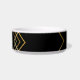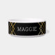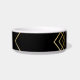 Goudglitter en zwarte gepersonaliseerde hondenkom met een kunstdeco boho mashup-ontwerp met een modern, geometrisch overlappend abstract chevron-patroon met de naam van uw kat of huisdier die direct op de elegante kom is gedrukt.