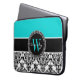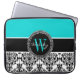 Speciaal Initiaal Aqua Black Damask Laptop Sleeve