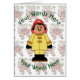 Deze speciale kerstkaart is aan één kant voorzien van een Speelgoed White Vrouw Firefighter. De achterkant is versierd met een afbeelding van de kerstman met zijn tas van goodies, en kan worden aangepast met namen, datums, enz.