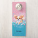 Een schattige kawaii papillon hondenillustratie in roze en blauw, met een speelse papillonpup die in spetters van plezier kibbelt. Personaliseer met een naam.