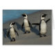 Trois pingouins d'âne ou pingouins africains - le demersus- de Spheniscus sur une plage sablonneuse, rochers échouent, ville de Simons, le Cap-Occidental, Afrique du Sud
