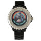 Montre de chat Sphynx avec strass. Dispose d'un Sphynx Cat réaliste contre un arc-en-ciel vibrant et arrière - plan de conception de coeurs, avec le drôle de dicton "Trop Cool pour la fourrure!" Personnalisez-le en téléchargeant une photo pour créer votre propre montre Sphynx Cat personnalisée !