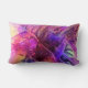 Een lange rechthoekige lumbale kussen met een creatief en cool modern, abstract fractaal ontwerp met scherpe planken en scherpe randen die het een glassy moderne look geven. Vele schaduwen van paarse roze en rood barsten met kleur creëer een levendig opwindend gevoel.