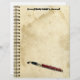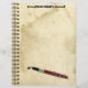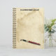 Hier is een echt leuk briefpapier. De blik van een oud spiraalverbindend dagboek. De pagina ziet er gekleurd uit alsof het rond de wereld is met je. Een inktpen onderaan met een inktvlek. De tekst heeft de blik van gedragen type. Dit briefpapier zal het leuk maken om brieven te schrijven.