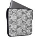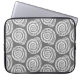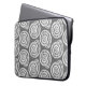 Laptophoes in een blokafdrukpatroon, gebaseerd op een spiraalvormige naaf, wit op een diepe grafische grijze / grijze achtergrond