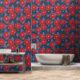 Grote rode, middelmatige jachtblauw en kleine royal paarse daisy-achtige bloemen zijn verspreid over een rijke groene achtergrond van het oerwoud, zodat creëer een kleurrijk floreel patroon kan worden gevonden dat zelfs in de herfst perfect is.