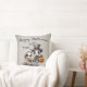 Dit Halloween thema kussen heeft een griezelige en schattige, gotische cartoon stijl illustratie. Een afbeelding van een jongensskelet met een hoge hoed en een kostuum jas, en een kleine spookmeisje porseleinen pop zijn afgebeeld aan de onderkant. Twee schattige vleermuizen vliegen boven hun hoofd terwijl ze hun jack o' lantaarns door de nacht dragen. Een "Happy Halloween" groet is afgedrukt over de bovenkant van het kussen in een elegant script lettertype. De achtergrond is voorzien van een schaduwpatroon.