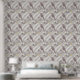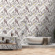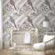Dit behang heeft een patroon met diagonale lijnen, vogeltjes en gele naturen voor liefhebbers.