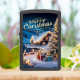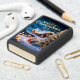 Een feestelijke kerstkaart met een prachtig versierde kerstboom omgeven door fel omwikkelde cadeaus, die een warme vakantiegloed afgeven.