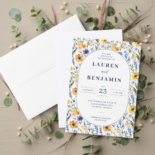 Celebrate your love in full bloom with our Spring Floral Collection, where delicate blossoms meet timeless elegance. Each piece is crafted to embody the fresh, uplifting spirit of a springtime celebration—think vibrant colorful petals meeting bold blue accents, and romantic touches that whisper of new beginnings. Recurring motifs include blooming flowers, timeless serif fonts, and monogram designs, tying together the invitations, thank you cards, menus, and other wedding essentials. These versatile designs appear across various product types such as paper plates, wine labels, envelopes, and signs, maintaining cohesive aesthetics throughout.