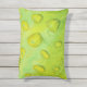 Dit Outdoor / Indoor Accent Pillow is voorzien van een originele, abstracte foto van ZoeSPEAK van regendruppels op een blad. Op de close-upfoto zien we de textuur en aderen van het blad vergroot in de contouren van de waterdruppels. Het glanzende gele groene blad reflecteert het blauw en geel van de lucht en het zonlicht.