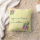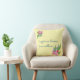 Springtime bloemenmotief heeft een licht, elegant bloemenontwerp. De bloemetjes en blaadjes hebben een zacht, waterverf uiterlijk en de scripttekst ‘happiness blooms from within’ is aan te passen met uw eigen zin. Op de achterkant van het kussen zit een repetitief patroon van een blad. De achtergrondkleur van het kussen kan worden aangepast.