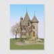 3D digitale rendering van een sprookjeskasteel op een groene weide, achtergrond blauwe lucht