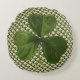 Een shamrock met 3 bladeren, het symbool voor St. Patrick's Day. Dit plant werd gebruikt door St. Patrick om de Heilige Drievuldigheid uit te leggen. Het kleine shamrock-patroon is aan beide zijden van deze kussens bedrukt, terwijl de enkele grote shamrock slechts aan één kant is bedrukt - waardoor variatie mogelijk wordt door de kussen gewoon om te draaien. Het motief is gebaseerd op sterk veranderde foto.