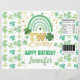 Thema: St Patrick's Day Rainbow Shamrock. Occasies: Kind Birthday Party. Stijl: Cute, Elegant, Boho. Kleuren: groen, goud, wit. Grafische kaart: regenboog, Waterverf, False Gold.