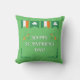 Deze gooi kussen voorzien van een feestelijk Sint Patrick's Day-ontwerp met witte typografie, groene shamrocks en de vlag van Ierland.