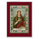 Image vintage de St. Philomena. Elle tient une paume et une corde. St Philomena a une couronne de roses sur sa tête qui signifie martyre. L'image est entourée d'une bordure rose avec un arrière - plan damassé en marron.