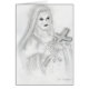 Un beau croquis noir et blanc de crayon d'un saint revêtu d'une robe Therese tenant une croix rocailleuse et des fleurs dans des ses mains.