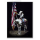 Een prachtige foto van het cowgirl op een palomino- en wit schilderpaard met de Amerikaanse vlag tijdens het volkslied op de Snake-rivier van 2014.